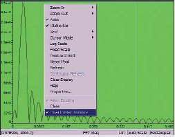 Теперь рассмотрим, как реализовать отображение обрабатываемого сигнала в виде спектрограммы. Необходимо включить визуализацию данных (рис. 7). В появившемся окне (рис. 8) в графе Display Type указать FFT Magnitude. Остальные графы заполняются аналогично рассмотренному выше примеру отображения осциллограммы.