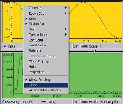 Если при запуске программы на выполнение окно визуализации исчезло, тогда его можно вернуть через главное меню CCS: Window --> Graphical Display (рис. 17). Как уже отмечалось, производить визуализацию в главном окне неудобно. Кликнув правой кнопкой мыши в рабочей области и выбрав опцию Float Main In Window (рис. 18), можно перевести визуализацию данных в отдельное окно (рис. 19).