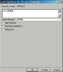 После создания проекта библиотеки можно произвести настройку опций компилирования. Например, вызвав меню настройки опций компилирования (рис. 34), на вкладке Archives можно указать папку для размещения созданной библиотеки (рис. 35).