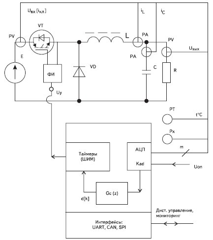 Рис. 4. Обобщенная структурная схема цифрового регулятора на основе микроконтроллера